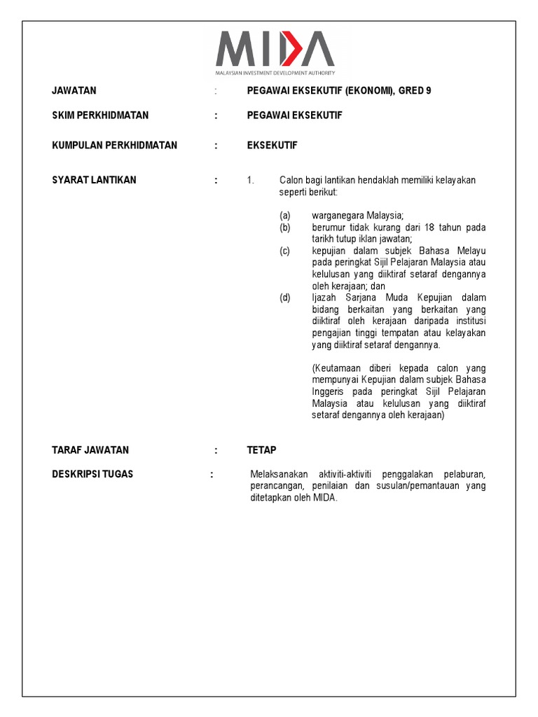 Iklan For Web Pegawai Eksekutif Ekonomi Gred 9 Pdf